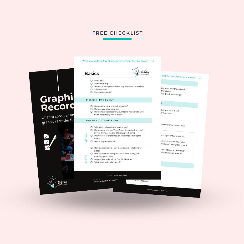 Download Free Checklist and see all topics that you need to consider before you hire Graphic Recorder on your event. It save you time, therefore money 🙂